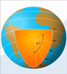 temos que um segundo (“) equivale a 30.87 m. Já para a latitude, há um valor específico para cada posição, que aumenta de, 0 na Linha do Equador, até aos Polos, onde está o seu valor máximo (90° de amplitude do ângulo).