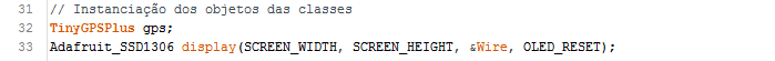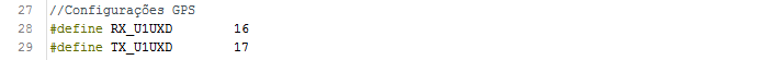 Logo após, são configurados os pinos de conexão com o módulo GPS: