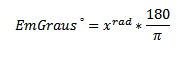 onde se deve multiplicar o valor informado em radianos (xrad) por 180/π que resultará no valor desejado em Graus (EmGraus°). Fórmula pode ser vista em www.google.com/search?q=radianos+para+graus