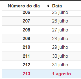 Ao já sabermos o dia do ano, 213 (para 1 de agosto de 2021), poderemos aplicar a fórmula: