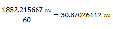 temos que um minuto (‘) equivale a 1852.21 m. Ao transformar o minuto para segundo,