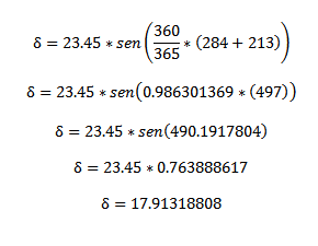 a qual resulta 17.91318808° de declinação.