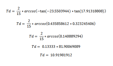 Para o Cálculo da duração do Dia, utiliza-se a seguinte fórmula: