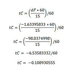 Caso dF seja diferente de 0 (zero), devemos fazer a correção de longitude, obtendo o tempo para correção através da seguinte fórmula: