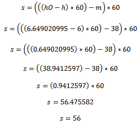 Fazemos o cálculo para descobrirmos o horário de nascimento do sol, que ainda está no formato Graus-Decimal: