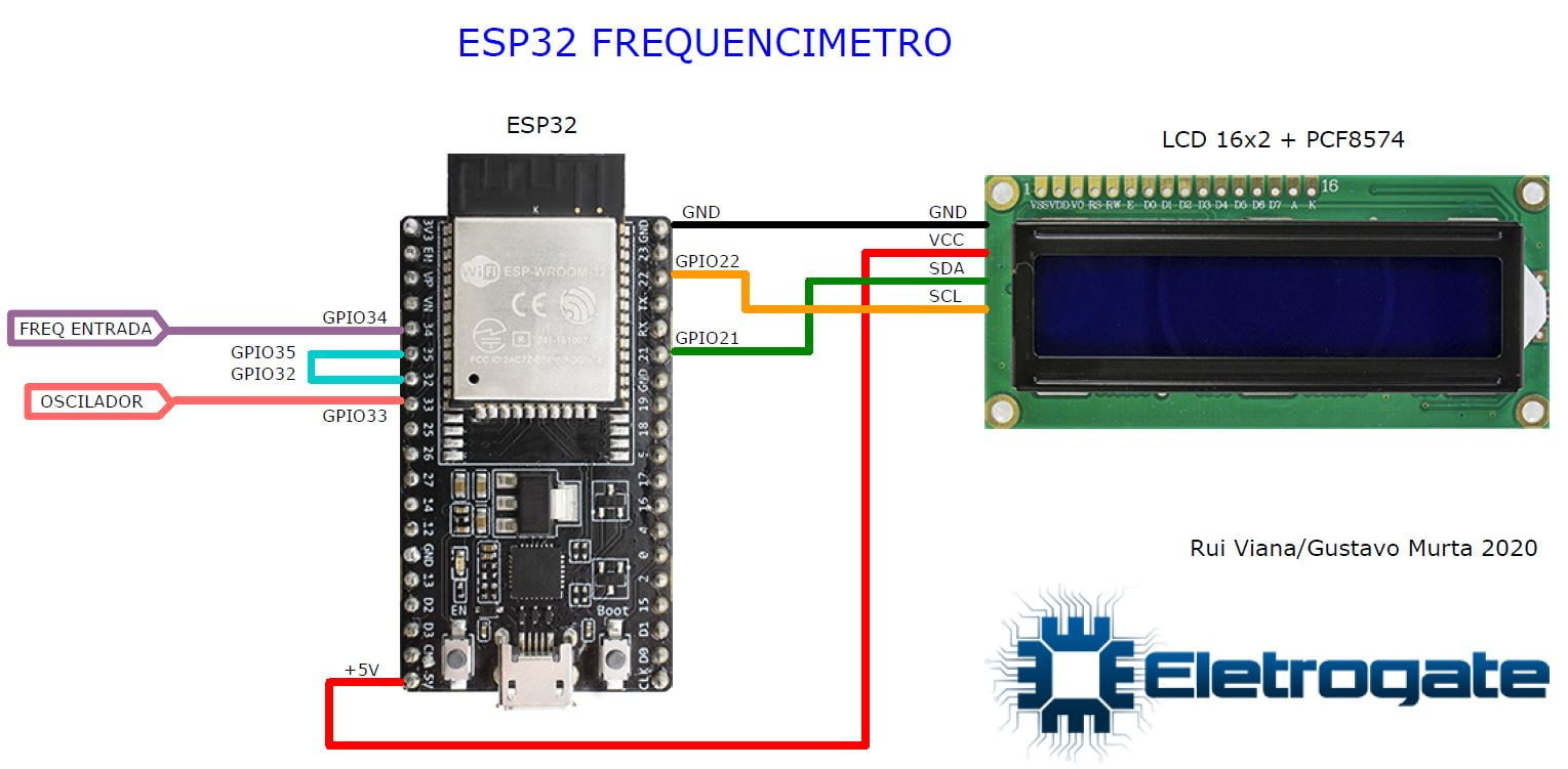 Nosso Frequencímetro utiliza esses seguintes periféricos internos do ESP32 (clique nos links, se quiser saber mais):