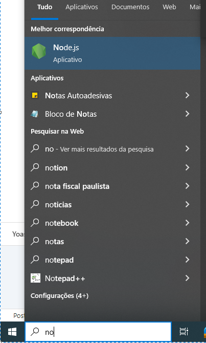 Com NodeJs instalado você deverá abrir o terminado software Node: