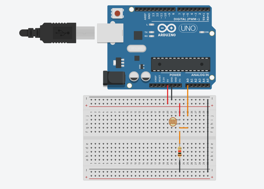 Este sensor de luz é baseado em um foto resistor que mede a intensidade da luz ambiente através da variação de sua resistência interna.