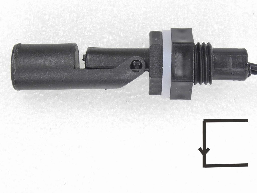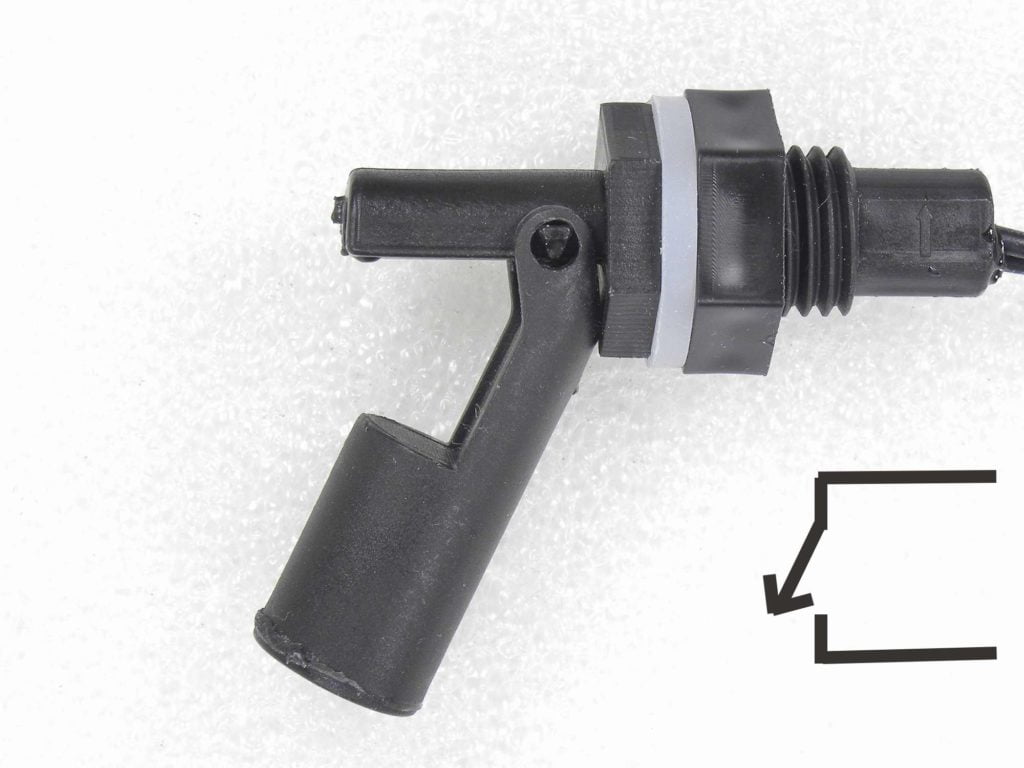 Essas imagens abaixo são dos sensores de nível d’água. Dentro da boia (parte móvel) tem um pequeno imã. Dentro do pino frontal do sensor, tem uma chave (reed switch) que é sensível ao magnetismo. Veja que quando a boia está para baixo, o contato fica aberto.