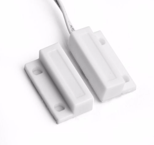 O funcionamento do sensor magnético MC-38, como já descrito em seu próprio nome, usa os conceitos do magnetismo para comutar seu circuito interno, permitindo o envio de um sinal para o microcontrolador. Podemos dizer que seu funcionamento se assemelha com um botão comum: de um lado existe um contado aberto (um reed switch, como já apresentamos aqui), e do outro lado do sensor existe um ímã. O reed switch possui contatos metálicos que, ao se aproximarem do imã, são atraídos por seu campo magnético e, consequentemente comutando seus contatos. Você pode conferir esse processo na ilustração abaixo: